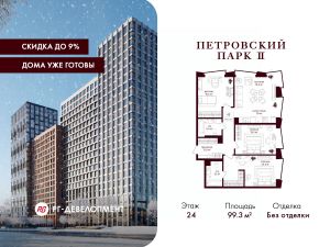 Продаётся 3-комнатная квартира 99.3 кв.м. в ЖК "Петровский парк II" на 24-м этаже 25 этажного дома.