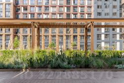 На закрытой территории зеленые зоны с цветниками, места для отдыха, спортивные и игровые площадки.
