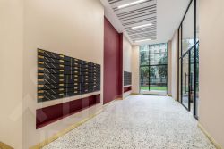 Эстетика архитектурных форм продолжается в интерьере внутренних пространств - двух центральных лобби и входных группах.