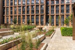 На закрытой территории зеленые зоны с цветниками, места для отдыха, спортивные и игровые площадки.