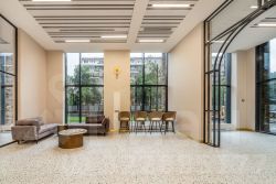 Эстетика архитектурных форм продолжается в интерьере внутренних пространств - двух центральных лобби и входных группах.