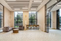 Эстетика архитектурных форм продолжается в интерьере внутренних пространств - двух центральных лобби и входных группах.