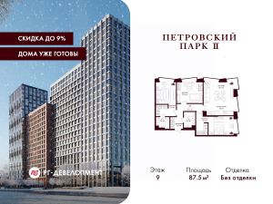 Продаётся 3-комнатная квартира 87.5 кв.м. в ЖК "Петровский парк II" на 9-м этаже 25 этажного дома.
