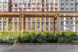 На закрытой территории зеленые зоны с цветниками, места для отдыха, спортивные и игровые площадки.