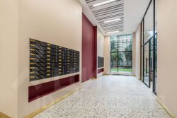 Эстетика архитектурных форм продолжается в интерьере внутренних пространств - двух центральных лобби и входных группах.