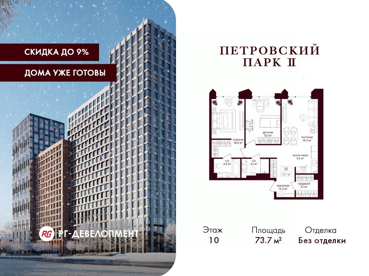 Компания "РГ-Девелопмент" предоставляет скидки на квартиры в жилом комплексе. Акция действительна с 01.12.2025 г. до 31.12.2025. включительно. Для того чтобы воспользоваться предложением, необходимо подписать договор на приобретение недвижимости до 31.12.2025г., включительно.