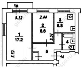 Кухня 5,2 кв.м, большая комната более 17 кв.м, маленькая 9,6 кв.м.