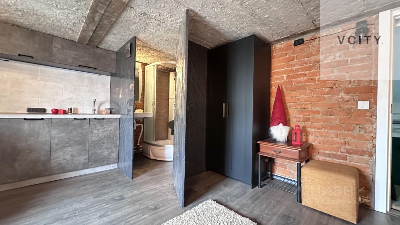 Однокомнатная квартира-студия общей площадью 17 м, готова для жизни. Есть холодильник и посудомойка, а также небольшой винный шкаф! На этаже много места для организации хранения. В потолке - крепкие металлические крючки. Хоть гамак вешай!