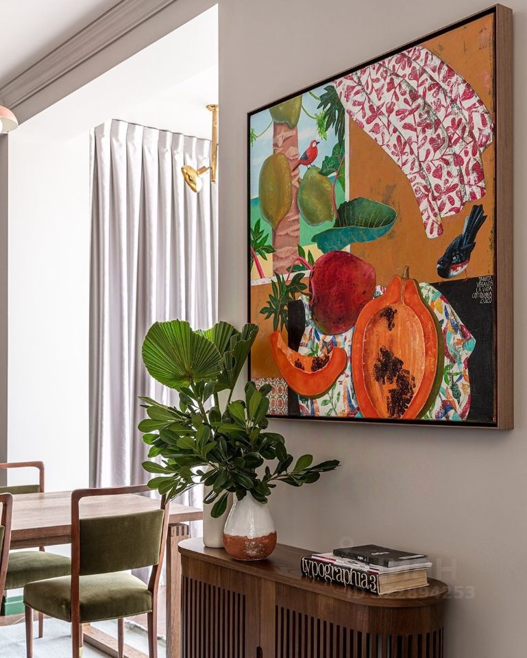 Стильный интерьер с минималистским дизайном, акцентами на искусство и кино