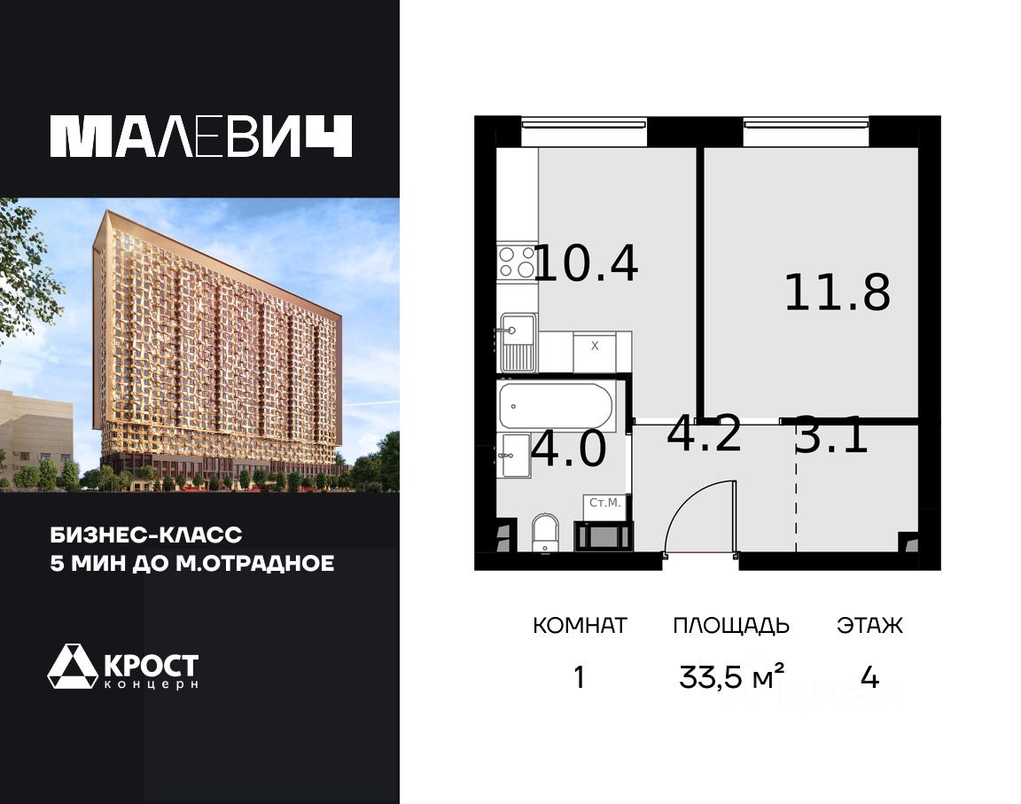 Продаётся 1-к апартаменты 33.5 кв.м. на 4-м этаже 28 этажного дома. Без отделки. Срок сдачи: 3 кв. 2025 г. Дом MALEVICH - это идеальный проект мультифункционального жилого дома, в котором все элементы общественных и личных пространств тщательно продуманы и спроектированы. Здание состоит из двух объемов, один из которых сдвинут относительного другого в горизонтальной плоскости. Авторы идеи придумали совмещать различные слои и цвета бетонов в одной плоскости и рисовать картины не кистью и красками, а различными рецептами бетонов. Картины украсят полы, стены и потолки входных групп, подземного паркинга, мест общего пользования. В Доме MALEVICH не один, а сразу 2 парковых общественных пространства, каждое из которых обладает собственной функцией: - внутренний двор только для жителей во внутренней части здания; - открытый парк-вернисаж на ул. Отрадная, доступный для внешних посетителей. Проект дома расширяет возможности вашей квартиры, предоставляя дополнительное пространство для работы, отдыха, учебы, дружеского общения и воспитания детей.Прямая продажа от застройщика ООО СЗ "Аквапарк "Отрадное ".