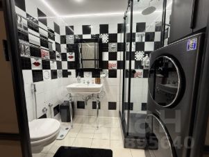 В санузле использована итальянская сантехника и плитка премиального класса фирмы Devon& Devon , стиральная машина-сушка фирмы Hyundai.