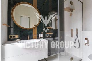 Дизайнерская отделка выполнена в утончённой светлой палитре, а в основе концепции лежит использование исключительно натуральных и премиальных материалов. Панорамное остекление наполняет пространство светом, а из окон открываются виды на тихую историческую улочку.