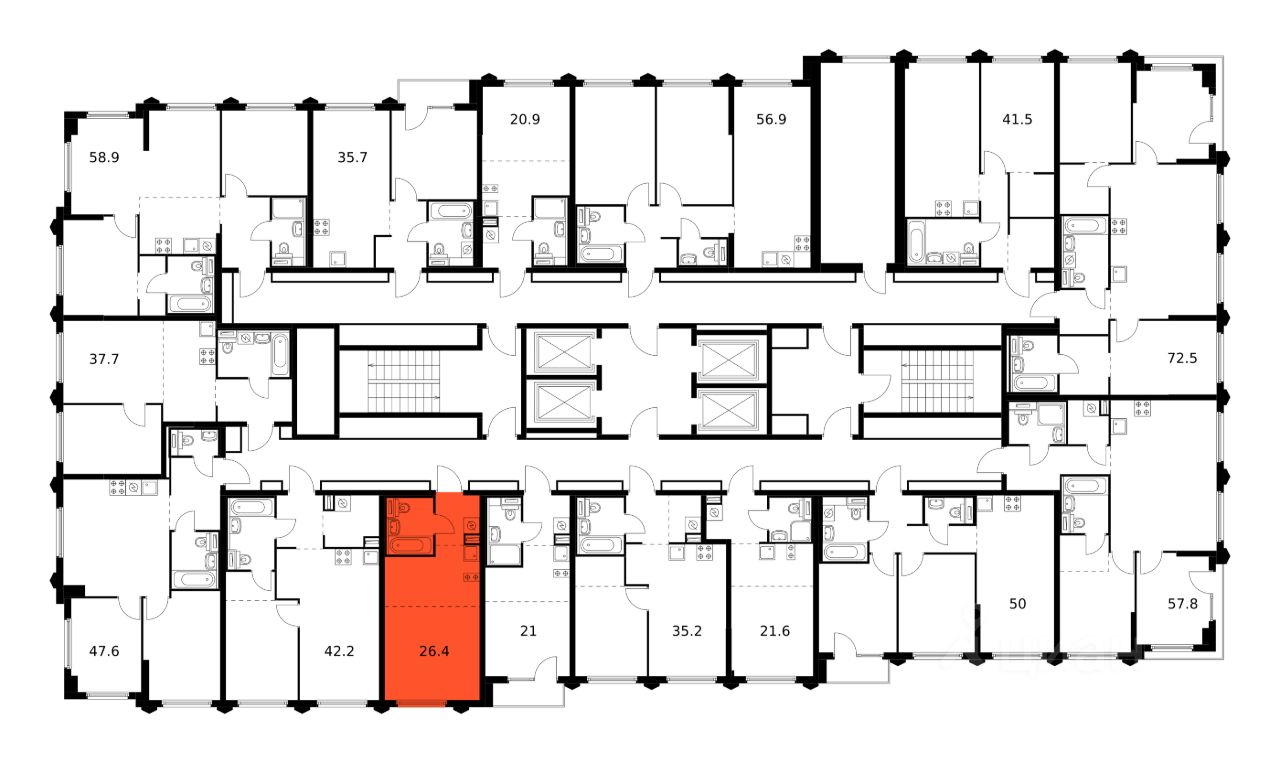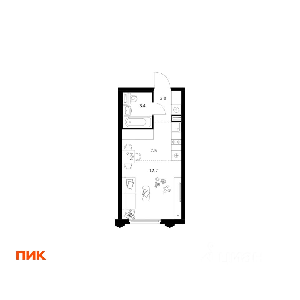 Продаётся квартира-студия площадью 26,4 кв.м на 20 этаже 32 этажного дома (Корпус 22.1, Секция 1) проекта ПИК Бусиновский парк. Светлый просторный подъезд на уровне земли, функциональная планировка, большие окна, c отделкой.