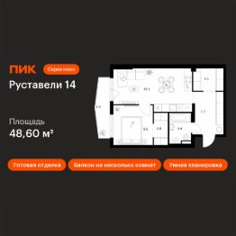 Продаётся 1-комн. квартира площадью 48,6 кв.м на 10 этаже 21 этажного дома (Корпус 3.5, Секция 1) проекта ПИК Руставели 14. Светлый просторный подъезд на уровне земли, функциональная планировка, большие окна, c отделкой.