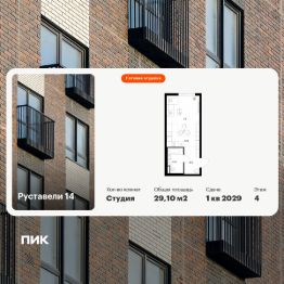 Продаётся квартира-студия площадью 29,1 кв.м на 4 этаже 16 этажного дома (Корпус 3.6, Секция 2) проекта ПИК Руставели 14. Светлый просторный подъезд на уровне земли, функциональная планировка, большие окна, c отделкой.