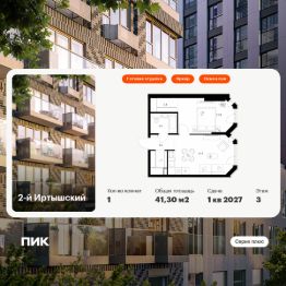 Продаётся 1-комн. квартира площадью 41,3 кв.м на 3 этаже 30 этажного дома (Корпус 1.3, Секция 3) проекта ПИК 2-й Иртышский. Светлый просторный подъезд на уровне земли, функциональная планировка, большие окна, c отделкой.