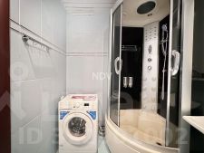 - Совмещённый санузел оборудован душевой кабиной, рядом с которой замечательно вписалась стиральная машина Indesit,