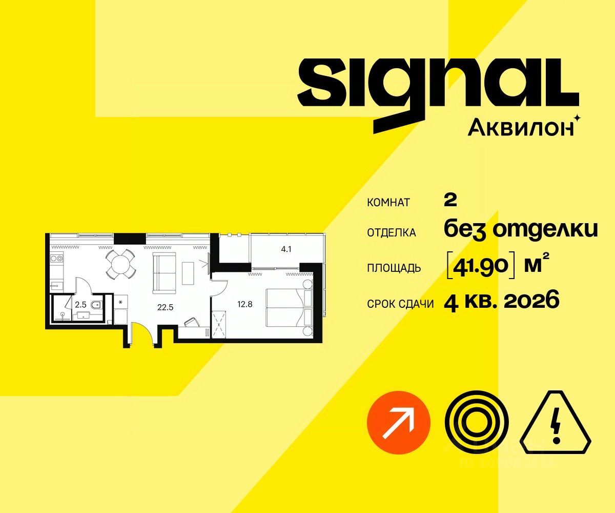 Продаются 2-комнатные апартаменты на 22 этаже 23-этажного современного апарт-комплекса Signal. Срок сдачи: 4 кв. 2026 г.