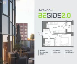 Продается уютная однокомнатная квартира на 15 этаже современного жилого комплекса Beside 2.0. Вид из окон: во двор. Срок сдачи: 2 кв. 2027 г.