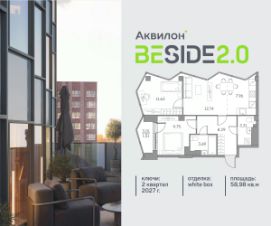 Продается 2-комнатная квартира на 13 этаже современного жилого комплекса Beside 2.0. Вид из окон: на улицу. Срок сдачи: 2 кв. 2027 г.