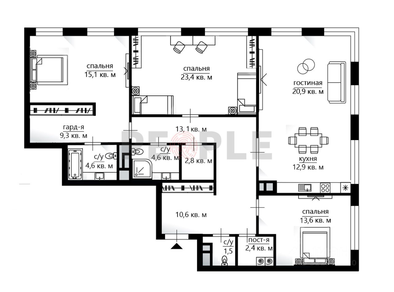 - мастер-спальня с собственным санузлом