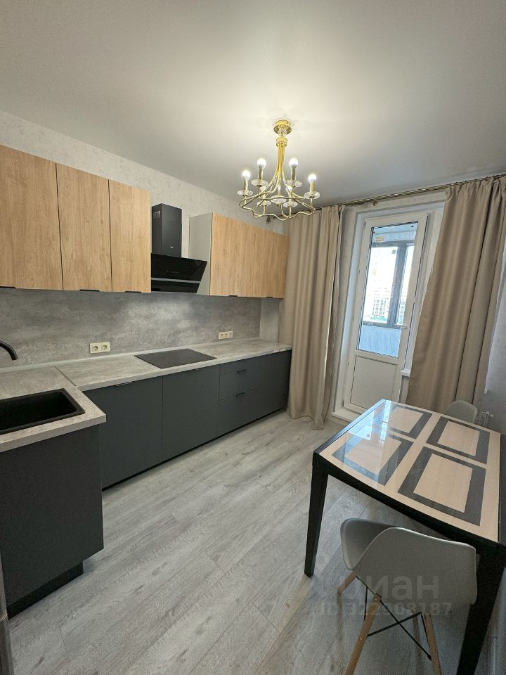 Общая площадь — 37,9 кв.м, просторная комната — 18,5 кв.м, кухня — 10 кв.м. Квартира полностью готова к комфортному проживанию: встроенная кухня с современным холодильником, сенсорной плитой и мощной вытяжкой, обеденная зона с удобным столом и стульями с выходом на застекленную лоджию.