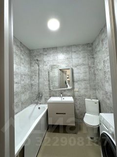 Санузел оборудован стиральной машиной, стильной подвесной тумбой и зеркалом с подсветкой. В комнате — комфортный диван-кровать, вместительный комод и отдельная гардеробная, которая позволит сохранить порядок и максимально использовать пространство.