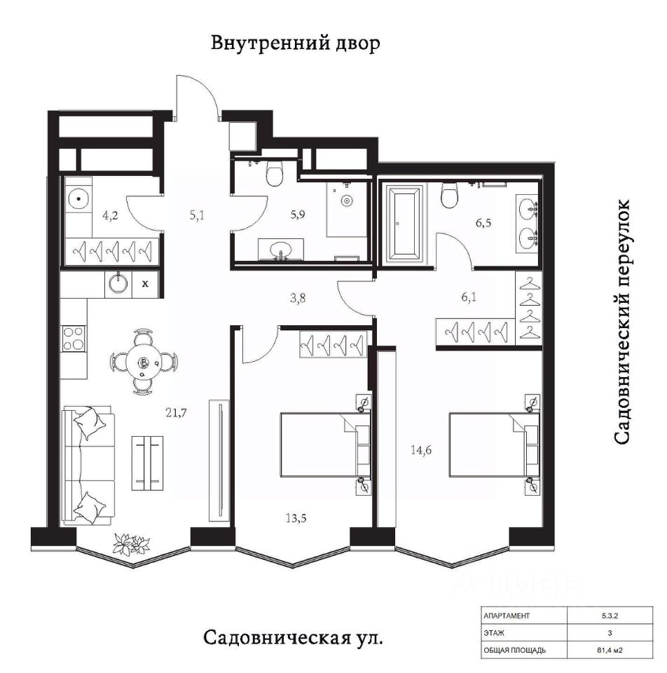 Продаются 2-комнатные апартаменты в сданном доме (Корпус 5), срок сдачи: II-кв. 2025, общей площадью 81.4 кв.м., на 3 этаже.