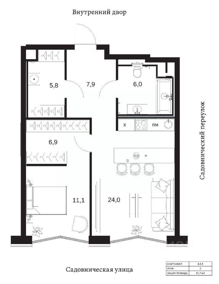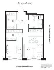 Продаются 1-комнатные апартаменты в сданном доме (Корпус 4), срок сдачи: II-кв. 2025, общей площадью 61.7 кв.м., на 2 этаже.