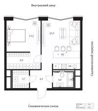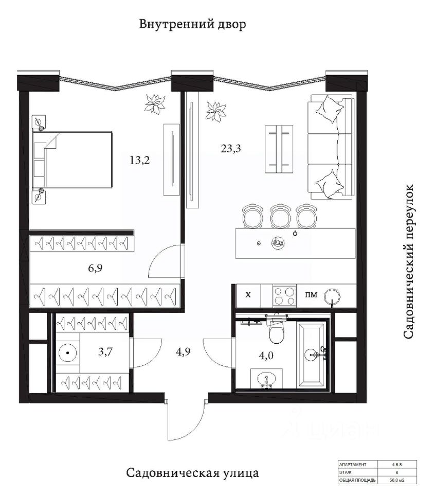 Продаются 1-комнатные апартаменты в сданном доме (Корпус 4), срок сдачи: II-кв. 2025, общей площадью 56 кв.м., на 6 этаже.