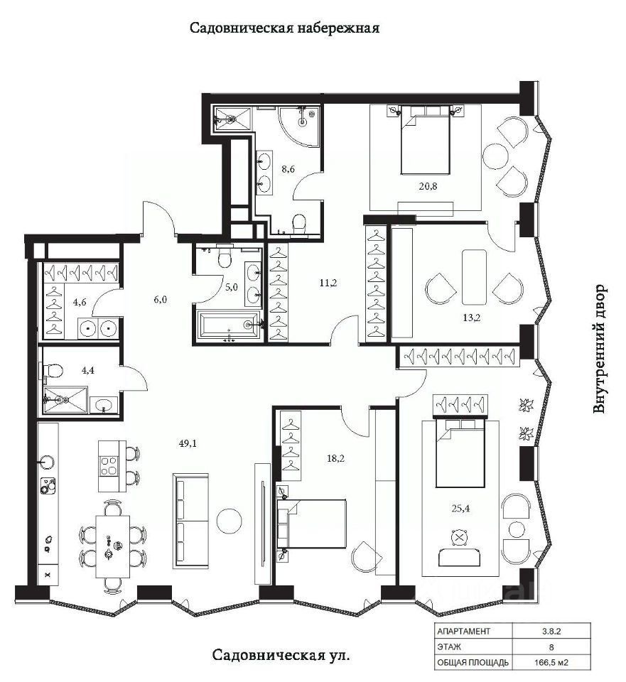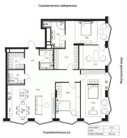 Продаются 3-комнатные апартаменты в сданном доме (Корпус 3), срок сдачи: II-кв. 2025, общей площадью 166.5 кв.м., на 8 этаже.