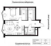 Продаются 1-комнатные апартаменты в сданном доме (Корпус 3), срок сдачи: II-кв. 2025, общей площадью 55.4 кв.м., на 8 этаже.