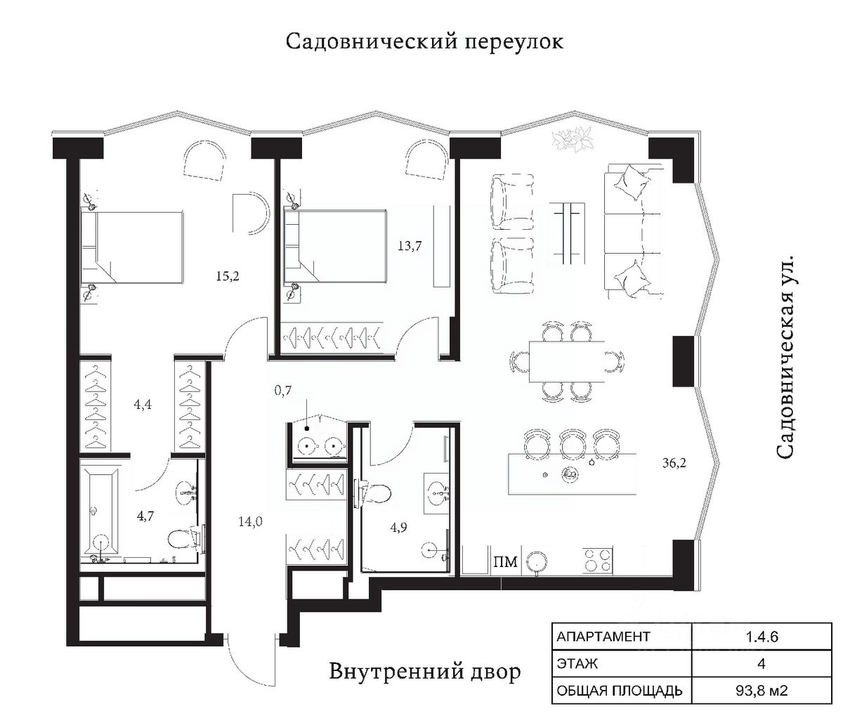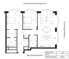Продаются 2-комнатные апартаменты в сданном доме (Корпус 1), срок сдачи: II-кв. 2025, общей площадью 93.8 кв.м., на 4 этаже.