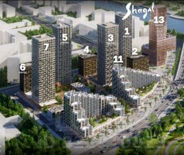 Продается Евротрешка в ЖК Shagal — жилом комплексе бизнес-класса в Даниловском районе Москвы, расположенном на набережной Марка Шагала, всего в 9 км от Кремля.
