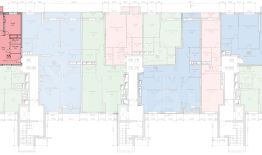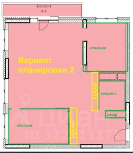 Свободная планировка (перегородок нет) - можно сделать хоть студию, хоть 3 отдельных комнаты. Особенно удобно молодым семьям: пока нет детей жить в планировке "студия". После рождения детей - поставить перегородки и выделить отдельные комнаты. На картинка показаны рекомендованные варианты, но Вы можете сделать все по-своему.