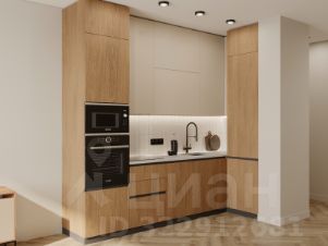 В квартире большая кухня-гостиная 30 м2, укомплектованная встроенной кухней и техникой.