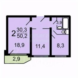 Продаётся отличная 2-к. квартира общей площадью 50.6 м с окнами во двор.