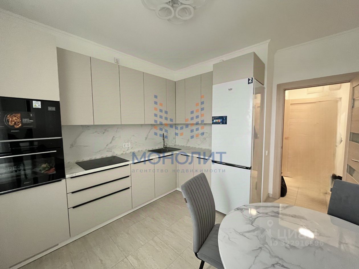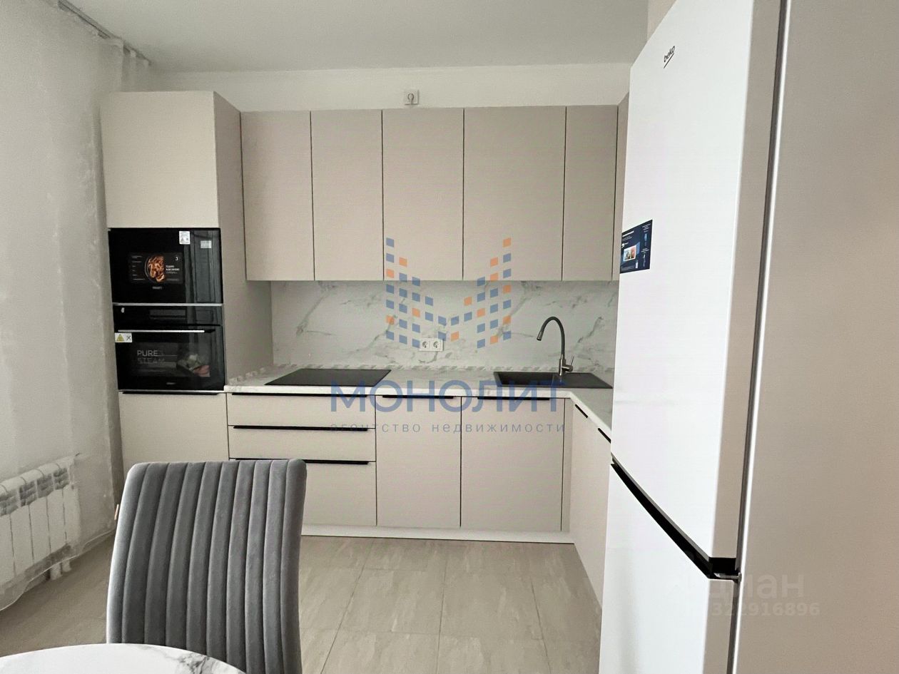 -Просторная кухня с кухонным гарнитуром и встроенной техникой.