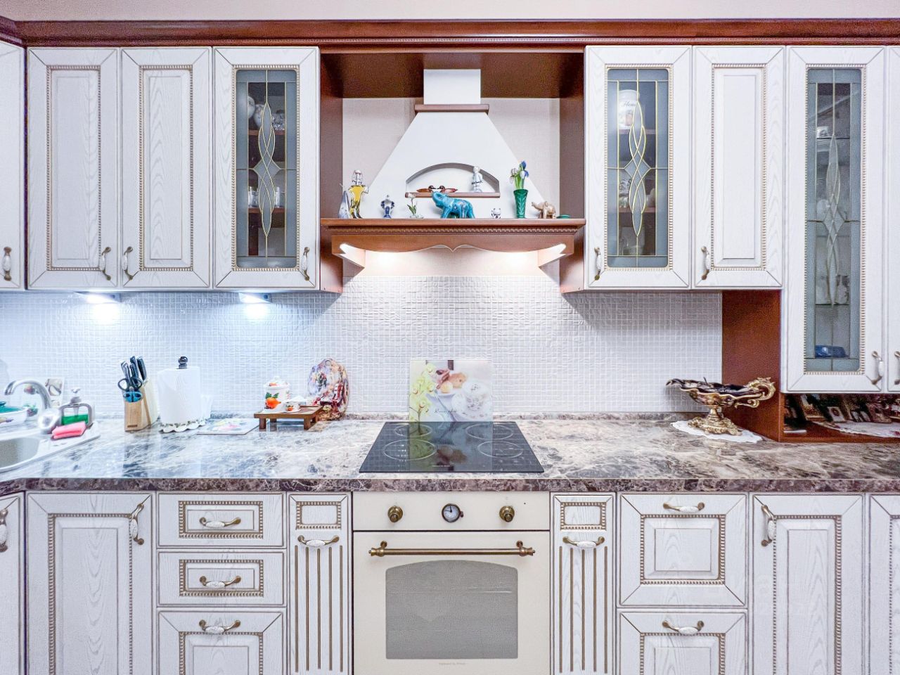 Дорогой качественный кухонный гарнитур из массива дерева.