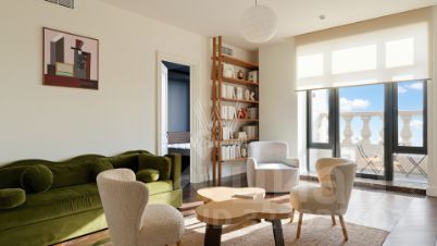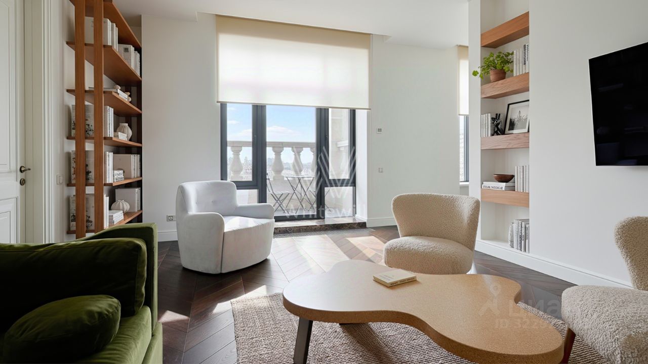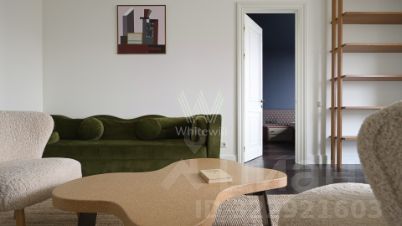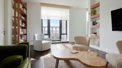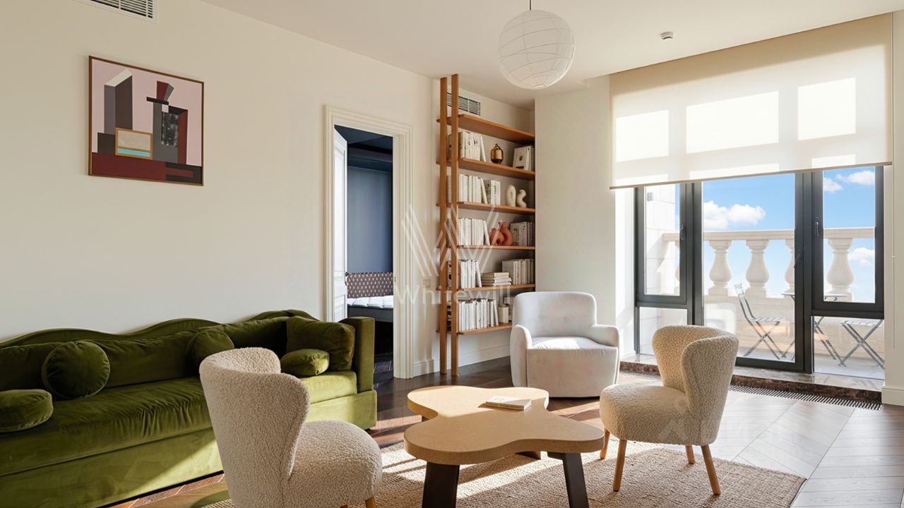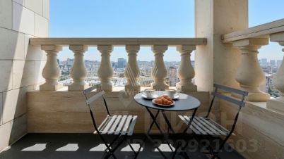 Высота потолков 3,1 метра. Функциональная планировка включает гостиную с выходом на балкон, кухню-столовую, мастер-спальню с собственной ванной комнатой и гардеробной, кабинет, который можно оборудовать как вторую спальню, гостевой санузел, постирочную и прихожую с гардеробной. Из окон открываются панорамные виды на центр города и площадь Тверская Застава.