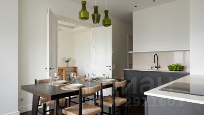 Установлены приточно-вытяжная система Mitsubishi, винтажные итальянские светильники, сенсорная подсветка на кухне и батареи с регулировкой термостата. Квартира укомплектована мебелью, изготовленной на заказ. Кухня оборудована духовкой с функцией микроволновки NEFF, индукционной плитой с вытяжкой Smeg и посудомойкой Miele. Сантехника представлена брендом Omoikiri, стиральная и сушильная машины — Miele.