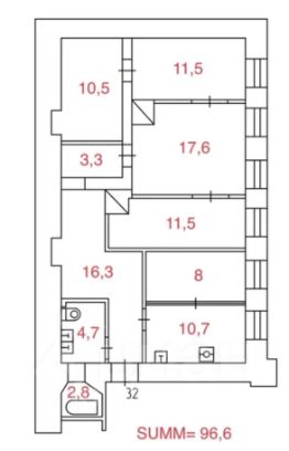 Общая площадь: 95,4 кв.м
