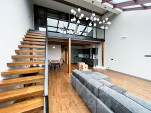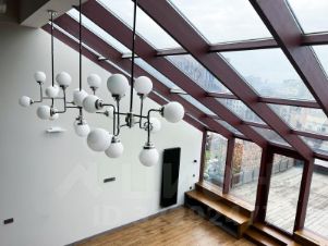 Двухуровневая планировка* с высокими потолками и панорамным остеклением. Площадь составляет 89м2 + 14м2 терраса