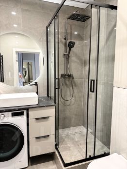 Квартира полностью оснащена мебелью по индивидуальному проекту, сантехникой и качественной бытовой техникой: бесшумный холодильник Samsung с системой NO FROST, посудомоечная машина, варочная панель, кондиционер с охлаждением и обогревом, проточный водонагреватель, стиральная машина LG с функцией полной сушки.