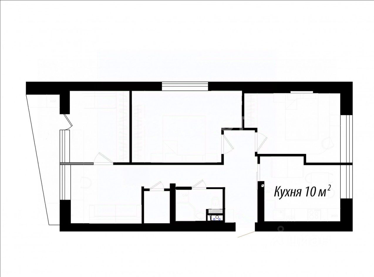 Жилая 54 м². (17+15+12+10).