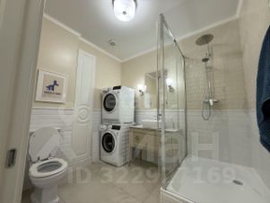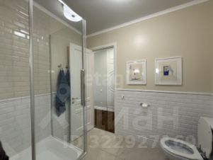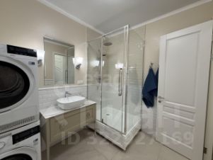 С/у совмещённый: душ с тропическим лейком, пенал, тумба с раковиной, стеклянная перегородка.