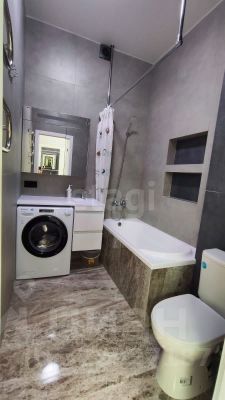 В ванной комнате керамогранит под мрамор, сантехника GROHE и VitrA, датчики протечек воды, стиральная машина. Высота потолков 3,1 метра
