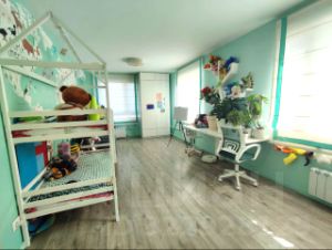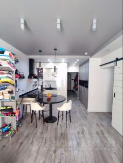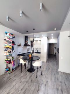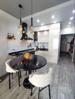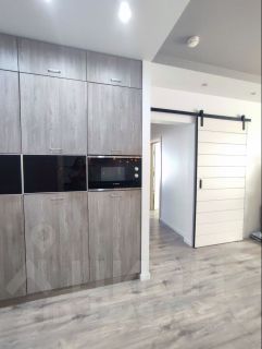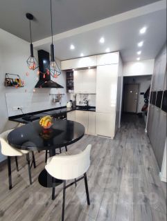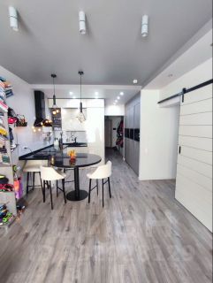 Квартира расположена на комфортном 9-м этаже 25-этажного дома. Квартира светлая, с большими окнами, в идеальном состоянии. Общая площадь: 81.4 кв.м.: просторная гостиная с кухонной зоной площадью 23,2 кв м, кухонный гарнитур выполнен под заказ, включая каменную столешницу - обеденный стол, встроенная импортная техника BOSCH (посудомойка, духовой шкаф, микроволновая печь, варочная индукционная панель). Гостиная отделена от остальной зоны стильной амбарной дверью, две отдельных комнаты: спальня (13.4 кв.м.) и детская (23.9 кв. м, объединенная из 2х комнат).
