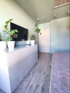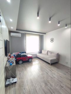 Оборудованная просторная гардеробная, двери-купе при входе. В квартире установлены 3 кондиционера и подогреваемые полы в ванной комнате и коридоре.