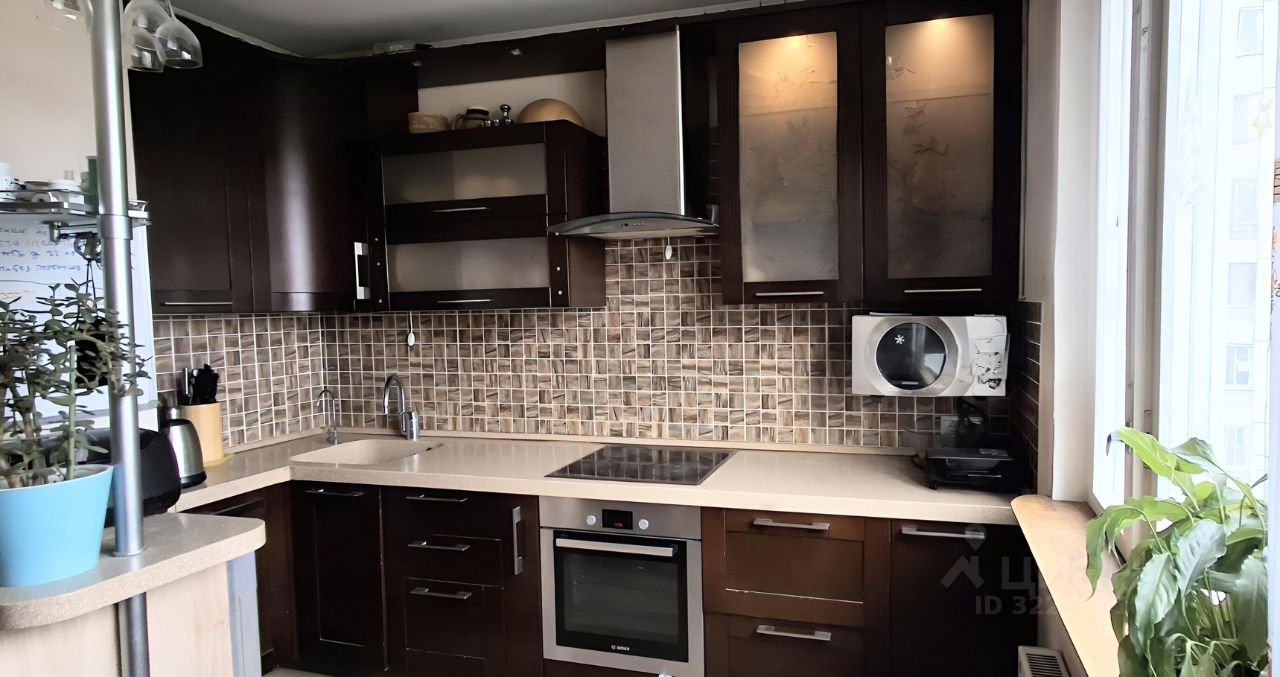 Общая площадь,с учетом летних,составляет 75.9 кв. м, жилая площадь — 45.1 кв. м. Кухня — 10.2 кв.м правильной квадратной формы.Укомплектована бытовой техникой BOSCH:электрическая варочная панель, духовой шкаф; посудомоечная машина Gorenie.